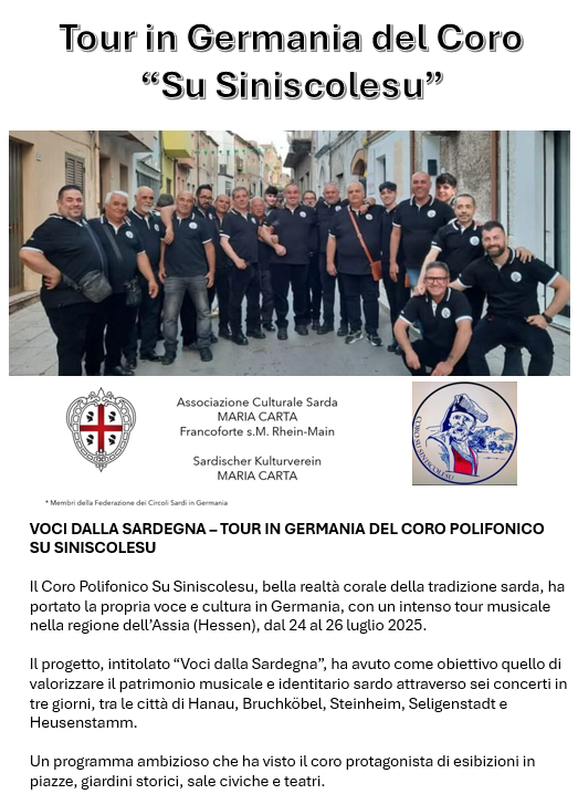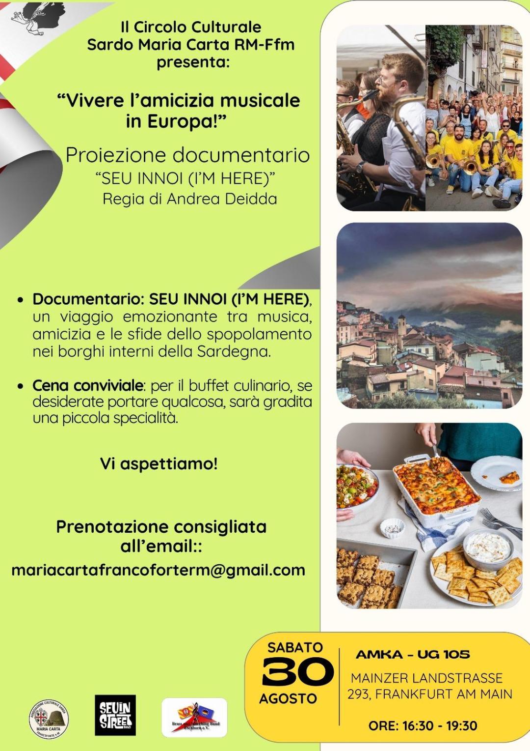 La serata è organizzata in collaborazione con il Centro Sardo Maria Carta di Francoforte sul Meno